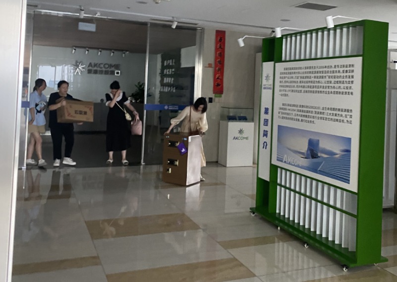 记者访谒时间,巧遇两位责任主说念主员从“爱康系”杭州总部搬出一台打印机。记者向前诡计获悉,他们并不是爱康的职工,而是办公斥地租出公司责任主说念主员。至于为何搬走打印机,有莫得结清服务费?上述责任主说念主员称:“雇主让他们来搬的,咱们平常职工并不主见。”